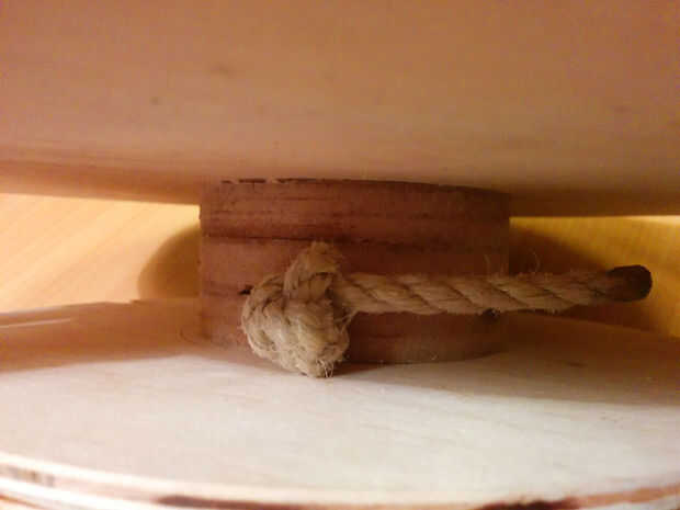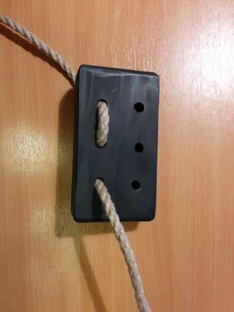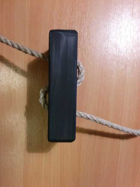 En primer lugar, a través de la cuerda del columpio del palillo y anudar un nudo para que el columpio esté asegurado como se puede ver en la primera foto.
