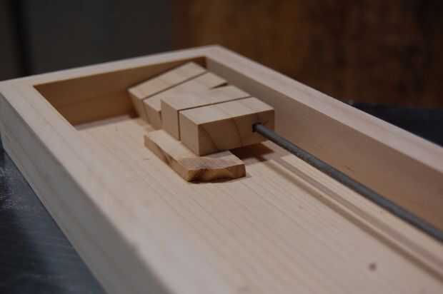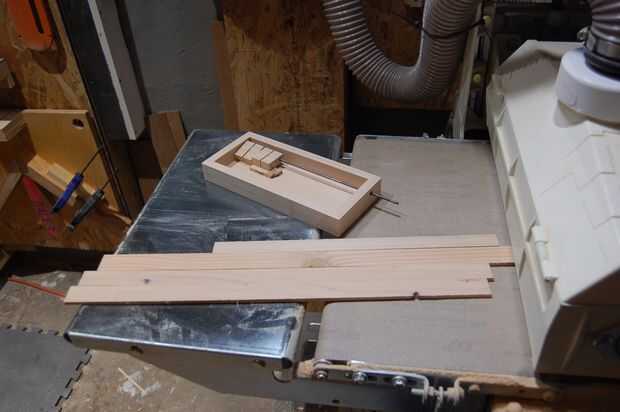 Podrían dejar los azulejos como es y vivir una vida feliz, pero yo quería sentarse nivel cuando cierre. Probablemente, usted podrá utilizar valores de corte de lámina sobrante, pero si no, utilizar atajos desde el bloque de baldosas o las paredes. En mi caso, necesito 1/8" de altura e hizo de los cortes de lado (arrancó en la Sierra de mesa y luego lijar a la perfección). He Ripeado este stock en tiras de 3/8" y corte a longitud usando el pequeño trineo corte transversal.