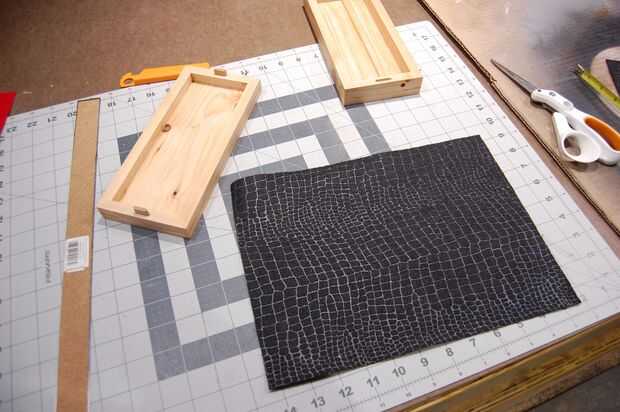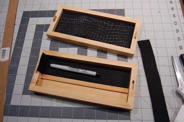 Había forrado la caja con fieltro de Miguel. Puede obtener diferentes colores y estampados en hojas 8 1/2 "x 11. Fieltro básico es de $0,39 y las impresiones del faux son $1,19.