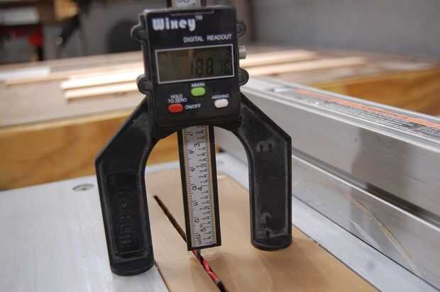 Estas partes necesitan ranuras para aceptar los paneles superior e inferior. Fui con 3/16 surcos profundos... así que la altura de la hoja con mi medidor Wixey.
