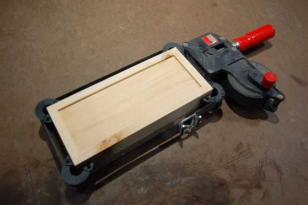 3. máscara de exprimir las esquinas con cinta para mantener el pegamento de la madera. Este paso fue enorme para mí. Mi mofa hasta era un lío pegajoso... esta resuelto el problema. Se sellará la caja, así que usted no puede limpiar el interno apretón hacia fuera.