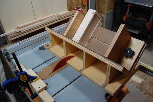 Fije un tope a la parte posterior de la Sierra de mesa, que me impide empujar el trineo más tiene que ir. A continuación puse la valla en la plantilla. Quería que mis espinas 3/8" en el borde. Por último, ejecutar cada rincón a través de la sierra.