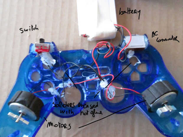 De la soldadura de sus motores + cables a un interruptor, luego a la + conector de la batería.