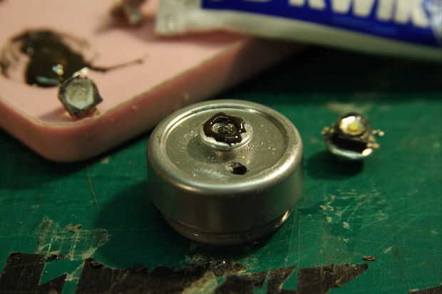 Pegar con cuidado cada LED a una tuerca. Esto, junto con el chasis de aluminio, actúa como un disipador de calor.