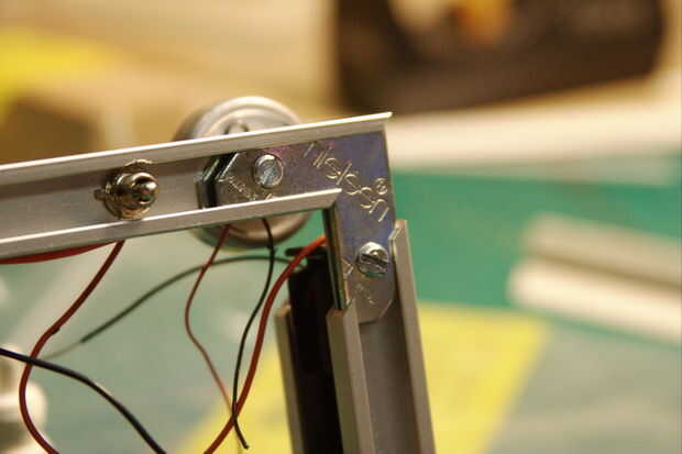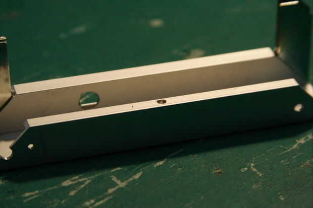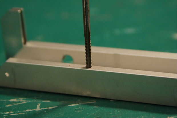 Este paso puede hacerse de dos maneras. Usando un taladro de broca #36 un agujero centrado en el egde exterior del riel superior e inferior. Estos serán colocar abrazaderas para sujetar el marco de la campana de la cámara. Ahora este tendrá que ser aprovechado para aceptar un tornillo 6-32, pero la alternativa fácil es comprar 6-32 tornillos autorroscantes, disponibles en la mayoría de las ferreterías.