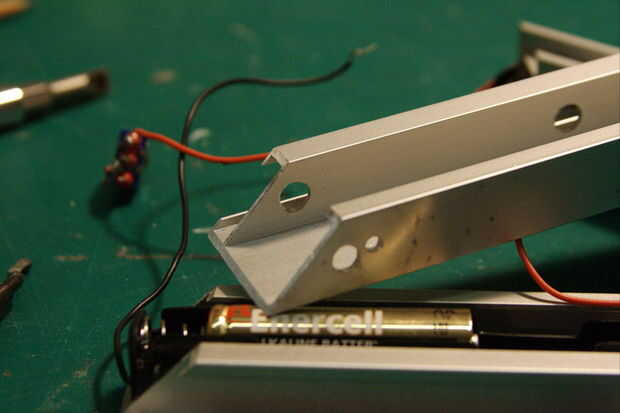 Coloque las baterías en los titulares y colocarlos temporalmente en los canales también. Una vez que esté seguro de que todo funciona alrededor de la campana, puede desmontar. Esto hará mucho más fácil de cableado.