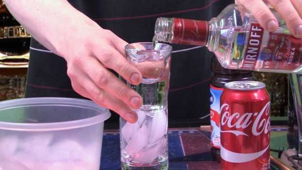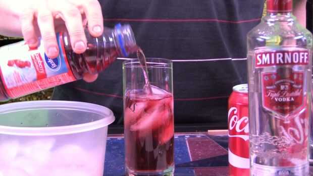 En un helado vidrio de Collin Vierta 1 onza de Vodka y 1 oz de Brandy de cereza. A continuación llene el espacio restante en el vaso la mitad con jugo de arándano. Rígido que todos juntos y luego llenan el vidrio del resto de la forma de coque!