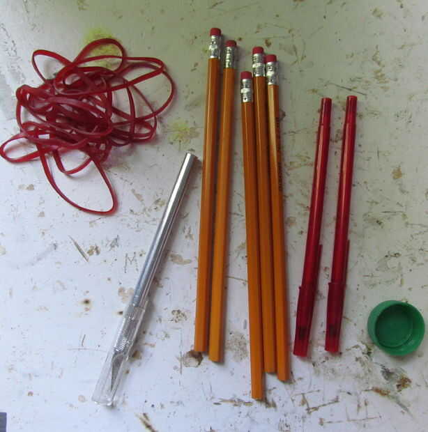 Lo que usted necesita:-10 lápices-al menos 14 bandas de goma-fuerte cadena-tapa de la botella-tijeras-algo para hacer un orificio en la tapa de la botellaTambién Recuerde por favor voten por mí en el concurso de suministros de oficina.Paso 1: Hacer l