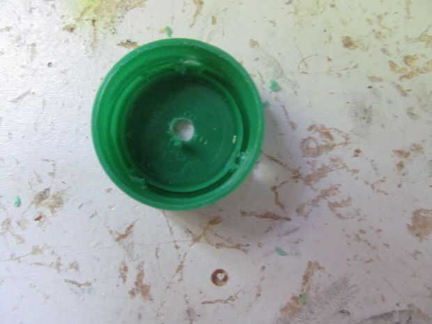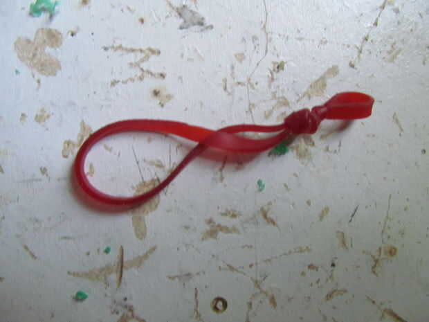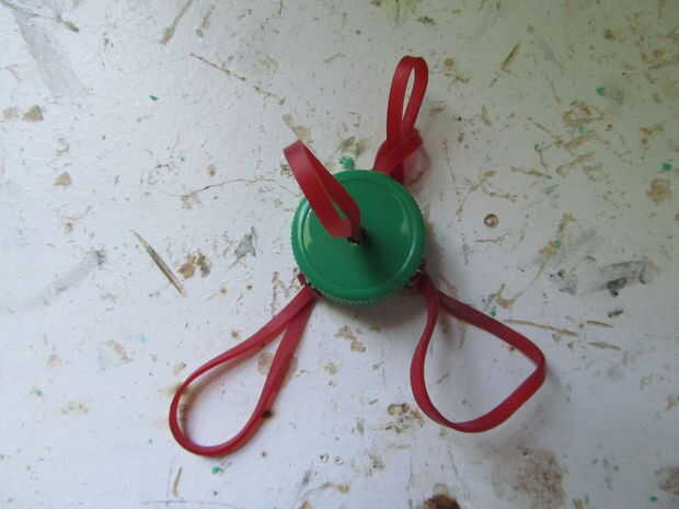 -Un nudo en el otro elástico y pasarlo a través del orificio en la parte superior de la tapa, con el nudo dentro de la tapa