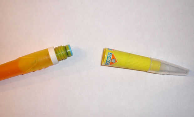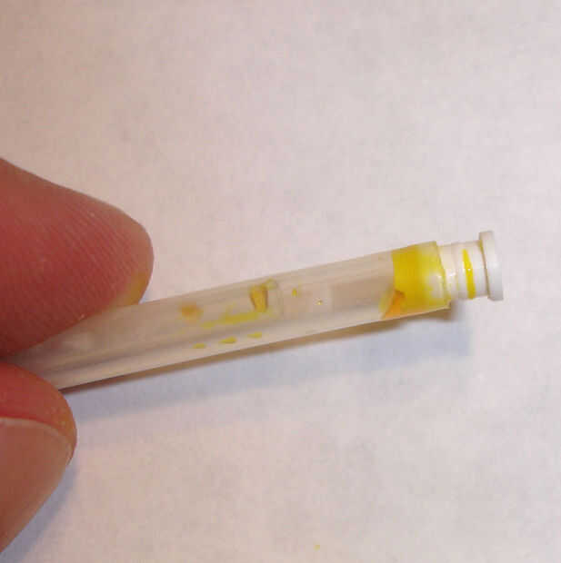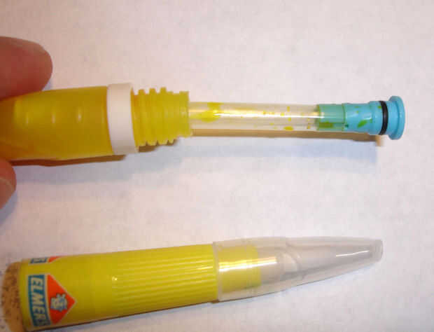 El depósito de la mitad es realmente color plástico, que no sabía de la primera pluma "convertido." Guardé el enjuague y se preguntaba por qué no sale el agua de color. Me sentí muy inteligente cuando me di cuenta el depósito de la mitad era color plástico.