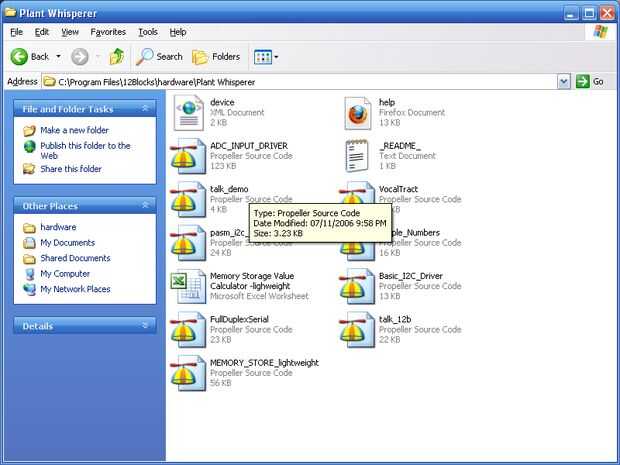 Si no está ya instalado, descargar e instalar la última versión de 12blocks. Usted puede conseguirlo aquí. A continuación, descarga el archivo zip que contiene el código de planta Whisperer. Copia la carpeta "Entre plantas" en C:/Program archivos/12blocks/hardware. Esta carpeta contiene código adicional para el programa compilar.