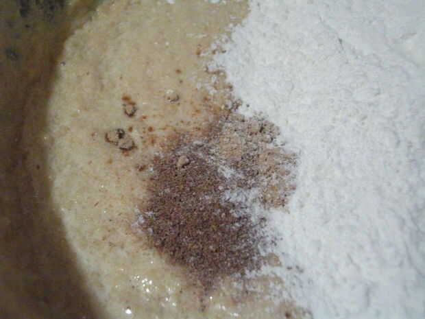 Añadir 1 cucharadita de especias mixtas y jengibre molido y una pizca de sal y 250g gluten free auto levantando la mezcla de harina. Es cierto - son sin gluten, también!