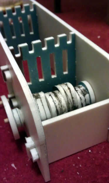 Una vez tienes las piezas cortadas, encontrar las 12 levas y pegamento 3 de ellos juntos, entonces haga otra vez 3 veces para que tenga 4 sets de 3, entonces usted puede rosqúelos sobre un palo (me olvidé de mencionar los palillos! necesita 2 bastones! utilicé el tipo de plantas de tomate rígido dependen de apoyo) pegar el cams juntos (spin cada sistema redondo así que están todos desplazados unos de otros un poco)