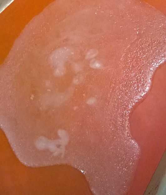 7. inmediatamente, Vierta el jarabe sobre una silicona mat o una hoja de papel de aluminio de servicio pesado (el lado brillante hacia arriba). Trabajo rápido y eficiente – más desguace del pan parece causar más cristales para formar. Si el jarabe se congela en el pan antes de llegar todos, recalentar pan sobre agua hirviendo para volver a fundir y terminar vertiendo. Mejor si es la rejilla o papel de aluminio encima de una superficie aislada (airbake galletas, tablero de corte de madera – no fría encimera de piedra). Queremos que los cristales para lentamente por lo que son más grandes y más difícil.
