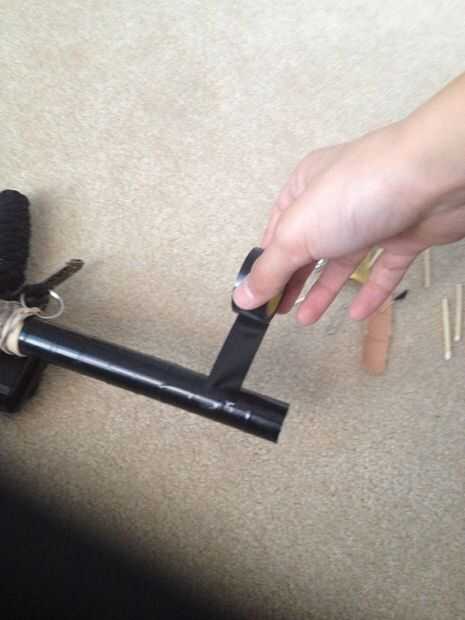 Tomar tiras de cinta aislante que son aproximadamente del mismo tamaño. Cinta adhesiva va hacia abajo hasta que caben ambas manos alrededor de ella como si fuese un bate de béisbol (útil como un club). Una vez que termine de grabar, seguir adelante.