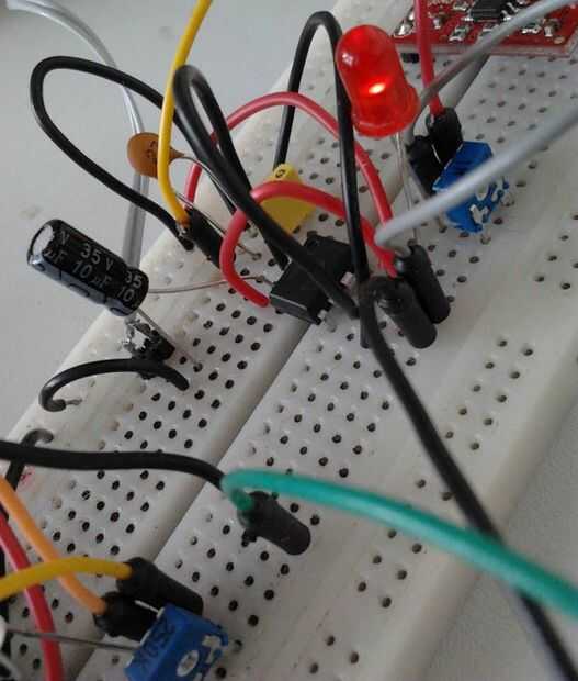 Otra vez miré las especificaciones y los dominios de la resistencia. Entonces hice algunas versiones sobre un tablero de experimentación.