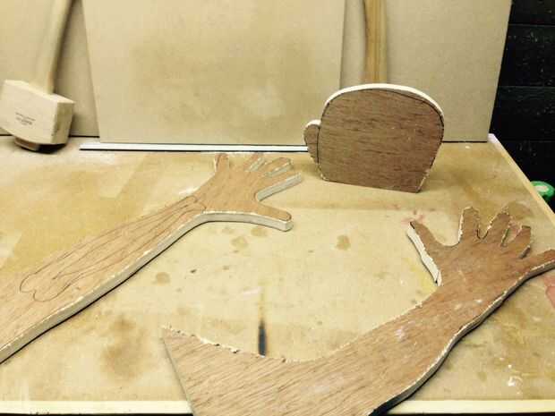 Paso 1: Cortar brazos cabeza y lápida de formas de madera contrachapada