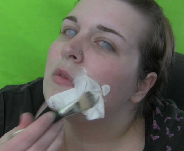Una vez que has aplicado TP en cierta área, dab un látex más sobre él, a saturar y aplástelo contra su cara. Las capas añadir un efecto fresco. Posteriormente si añades capas planas de TP, puede les abra y aplicar sangre en el interior los bordes para hacer un efecto real-herida abierta. Yo sólo quería mantener mina fácil, usé el TP como textura.