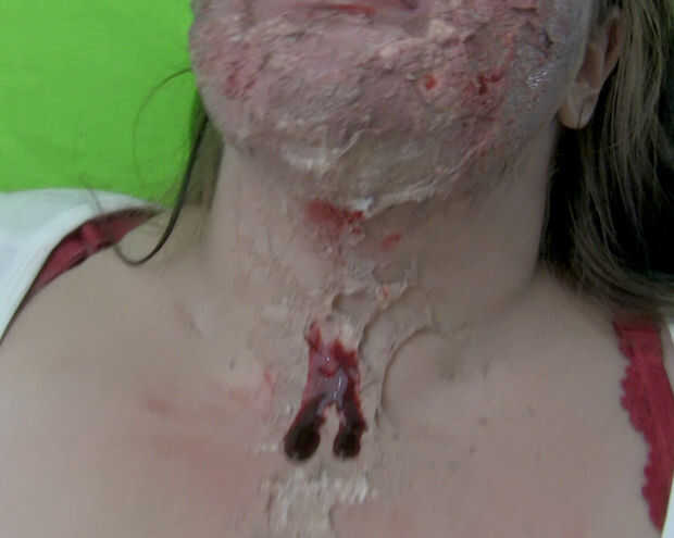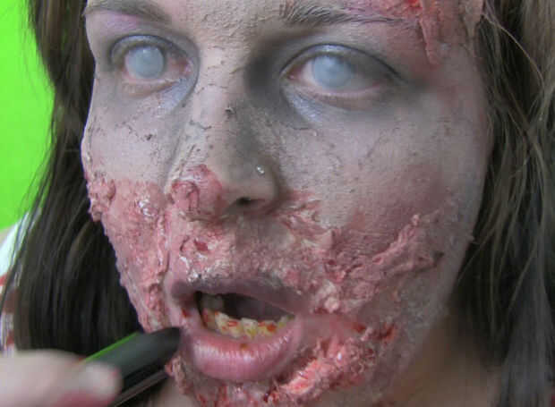 Añadir algún lápiz labial negro y mancha alrededor para que se vea morado y entrar un poco más en la boca para que se vea natural. (Si desea.)