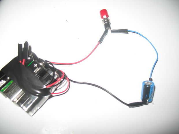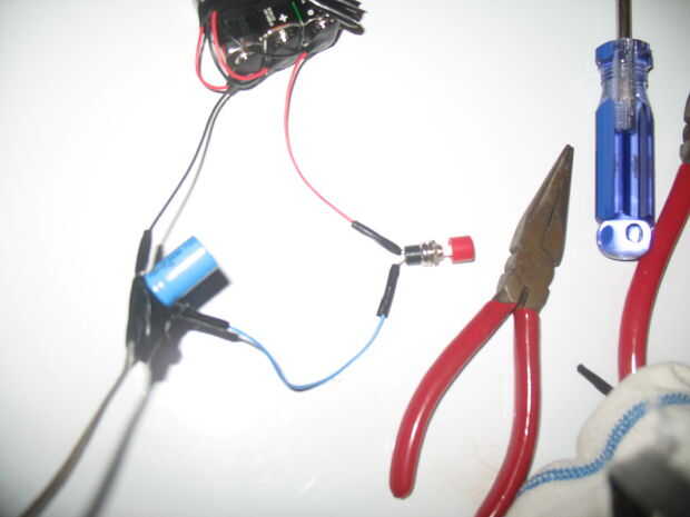 tome el cable positivo de sus baterías y que conecte a uno de los terminales en su conmutador. luego tomar un par de pulgadas de alambre y soldar un extremo al terminal restante en su conmutador y el otro al positivo en el capacitor. luego tomar el alambre negativo de las baterías y soldadura para el cable de negativo de su capactor. Después de soldar un cable en el cable de altavoz el conductor negativo en su condensador y el otro de tu positivo. Recuerde aislar las conexiones con cinta aislante o un artículo similar.