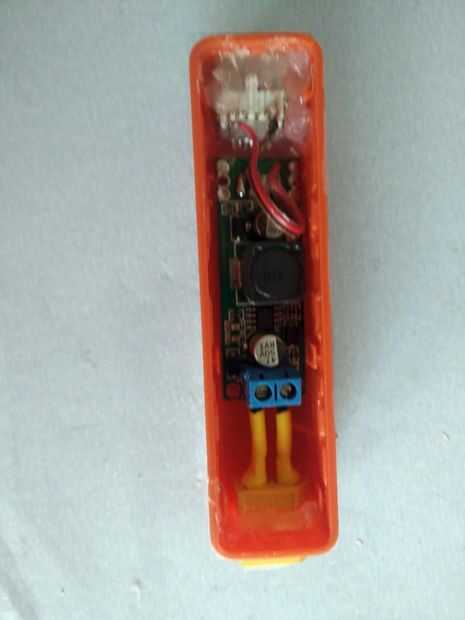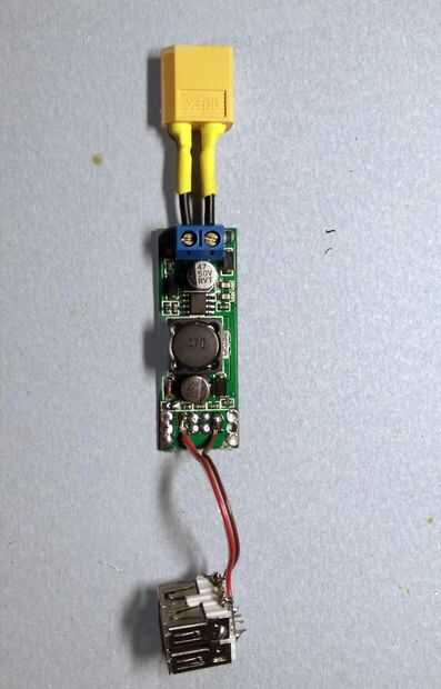 Para convertir los 12V de la batería de lipo de 3S, usé este convertidor usb pequeño porque cabe en el caso.