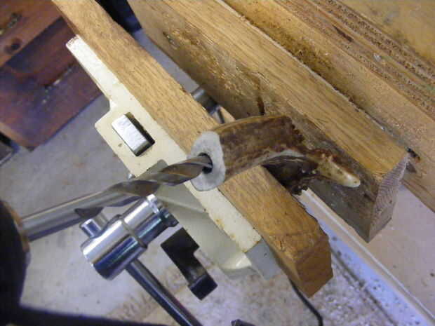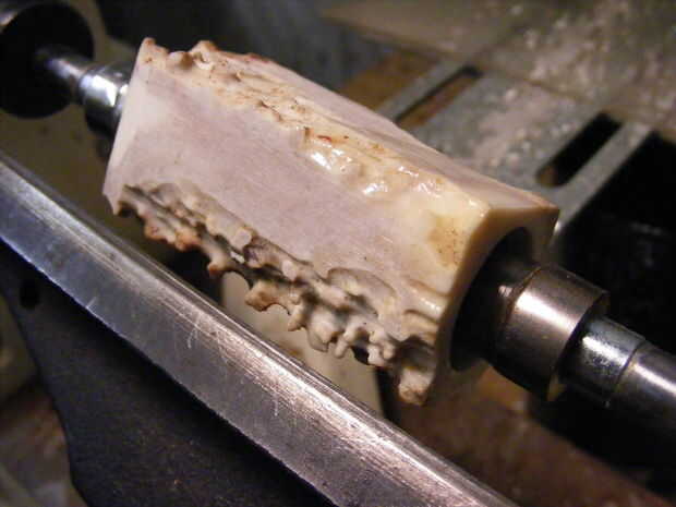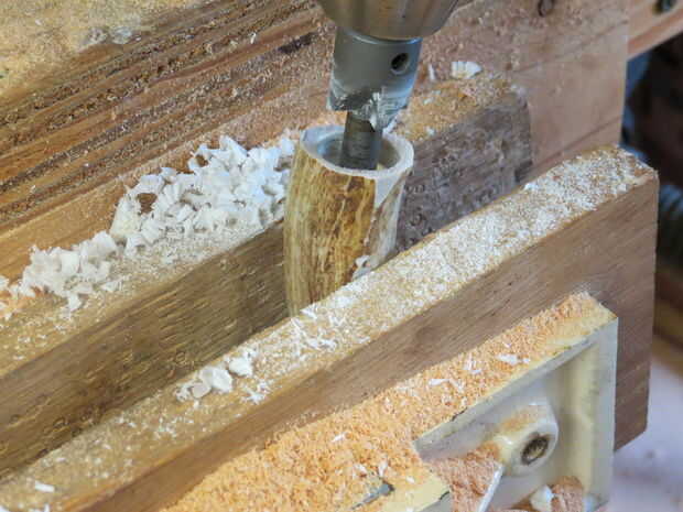 Consejo 2: Asegúrese de que usted asegure la pieza en un torno antes de cortar o perforar. La perforación es en el que percibe el olor más. Durante la perforación por el centro de un trozo de asta, prefiero utilizar tramos rectos anchos y bastante de cornamenta. Y todo depende de la profundidad del agujero. Vaya suave durante la perforación. Asta es difícil, pero puede agrietarse o fractura si usted subrayar demasiado durante la perforación.