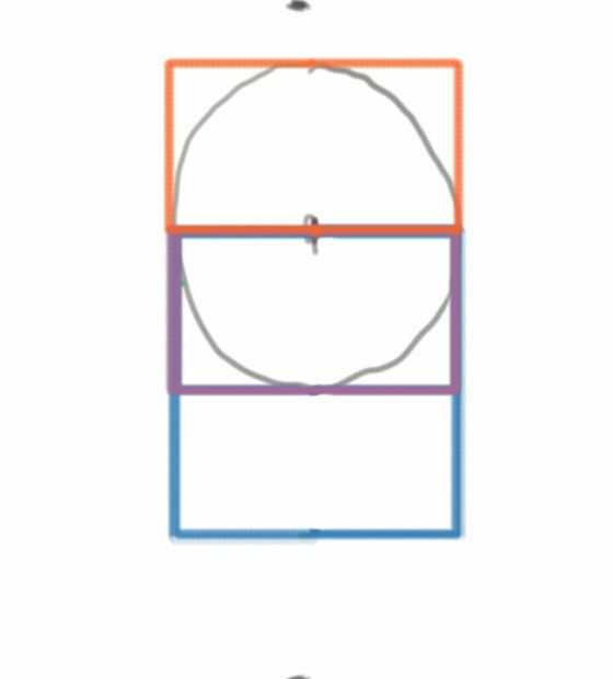 Ahora que sabemos donde está el centro, podemos dividir la cabeza en la sección. Nota el rectángulo naranja es una sección (parte superior de la cabeza) mediante la adición de dos más de rectángulo tenemos que sección 3. Que representa el área donde estará ubicados el ojos, nariz y boca.