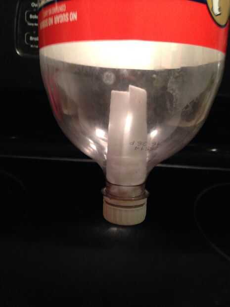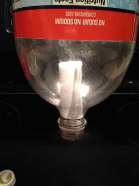 Despegar la parte superior de la botella. Enrollar el fieltro y pégalo en la abertura de la botella. Vuelva a colocar la tapa en la botella. El segundo filtro es super importante.
