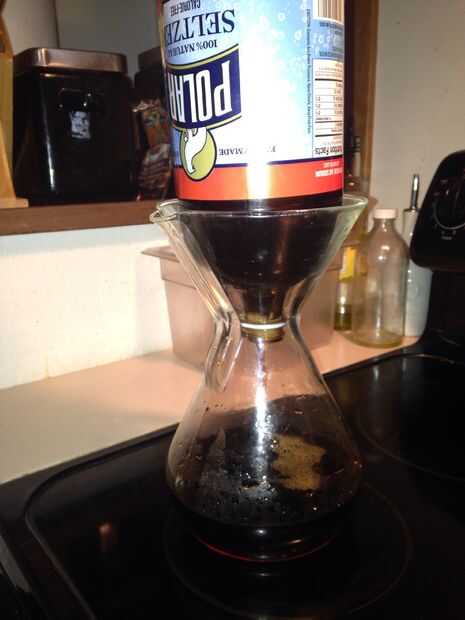 Después de al menos 12 horas, desenrosque el tapón de la botella y deje que el café desagüe en el contenedor. ADVERTENCIA: Esto puede conseguir un poco sucio. No se preocupe, usted conseguirá mejor con la práctica.