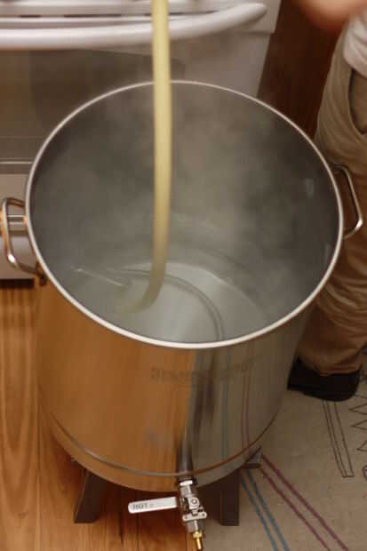 Dependiendo de su configuración puede puré derecho en su tanque de licor caliente (la olla del paso anterior) o transferir a una Cuba de puré como el mío. Cubas de puré separados son grandes ya que permiten una transición más fluida entre los pasos sin embargo toman mucho espacio que no es grande para los habitantes del apartamento.