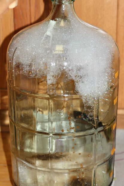 Tuve un S.G. de 1.048 en 4 galones, así que tengo que añadir 0,8 galones de agua a la Damajuana. Esto es donde viene bien poner graduaciones (líneas) en el lado de su Damajuana para ayudarle a determinar el volumen. Recuerde, cuando haciendo la fórmula que desea utilizar la concentración de sólidos disueltos, por lo que sería 0.048 en este caso a diferencia de 1.048.