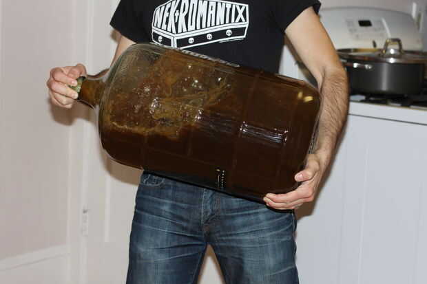 Una vez que la levadura se lanzó obtuve mi ejercicio para pasar la noche sacudiendo la Damajuana tapada vigorosamente por 5 minutos asegurar oxígeno suficiente disuelto en el mosto. Esto es importante para las células de levadura saludable y sabrosa cerveza, así que no escatimes.