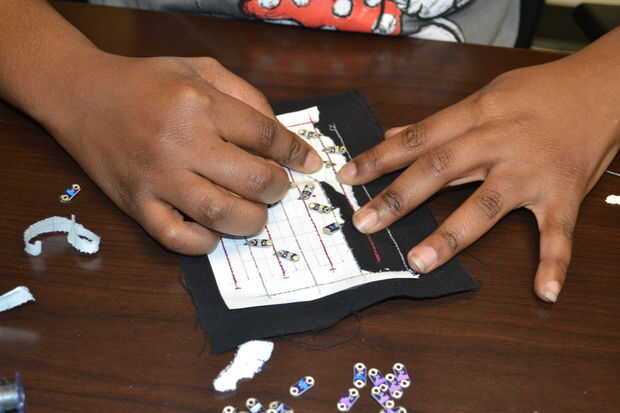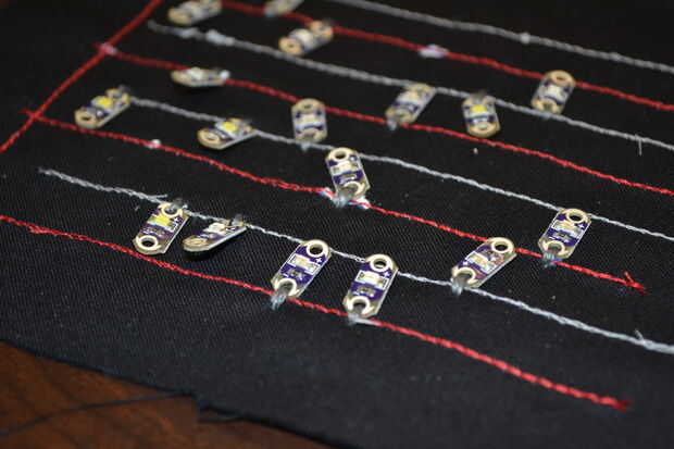 -Pantallas: De las pantallas de LED, es más fácil si coser un lado de cada LED y "romper" a la plantilla de papel.