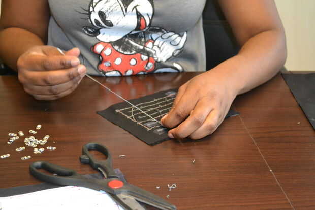 Si usted no se siente cómodo con la máquina de coser, usted puede también mano coser su hardware. Si elige este método, sugiero se utiliza una plantilla de papel, esto será de gran ayuda en la distinción entre los caminos positivos y negativos, como con el método anterior, desea extender sus rutas hacia fuera un poco. Cuidadosamente "rasgan" a la plantilla de papel. Una vez que se cosen sus rutas, puede comenzar a mano cose las piezas de hardware.