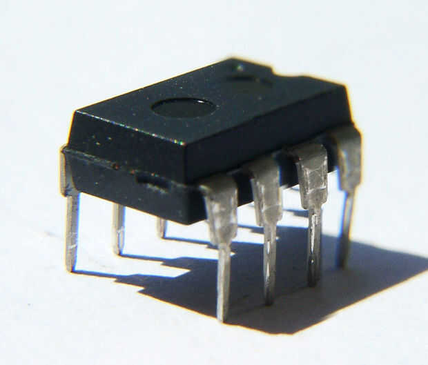 (Por encima de la imagen: adaptada de "Microcontrolador PIC16F84 en DIP." Autor: Wollschaf,