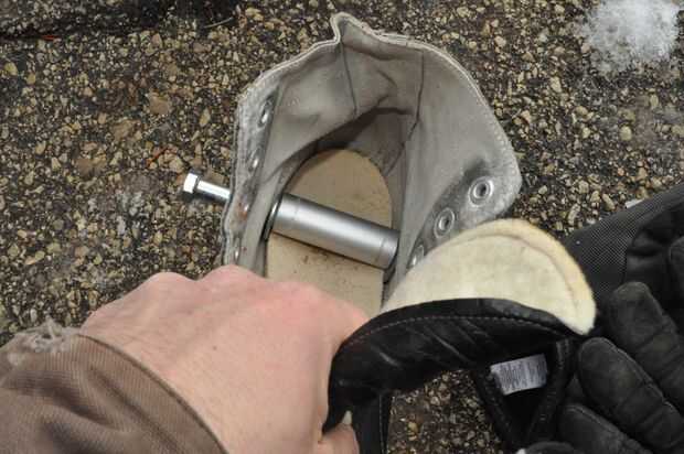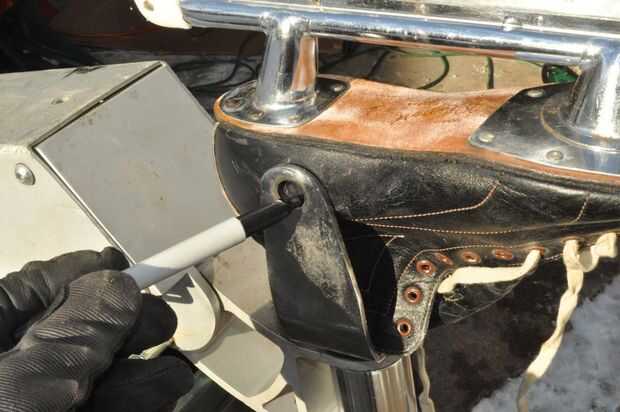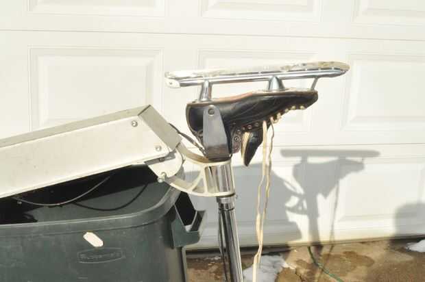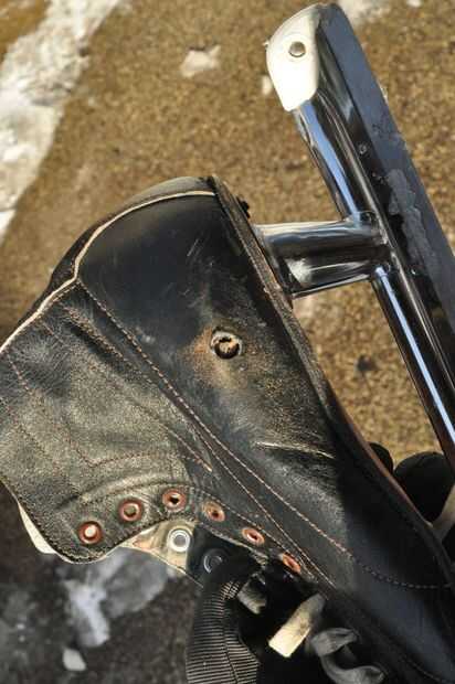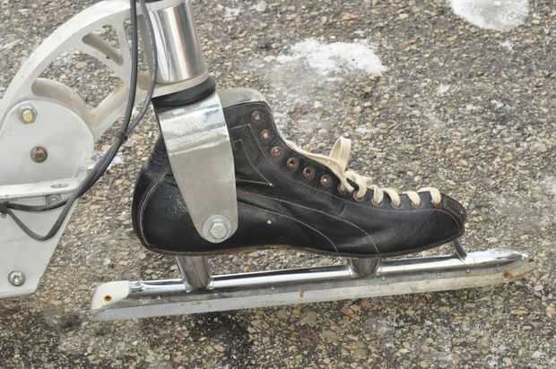 He insertado el patín del hielo en la horquilla delantera para que la Copa del talón hace buen contacto con un tenedor.