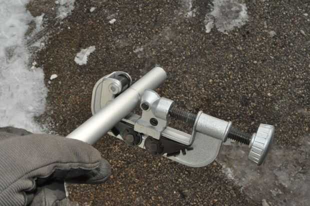 Tuve algunas muletas de aluminio viejo que estaba utilizando como material para otro proyecto. Que tubo de aluminio es el diámetro adecuado para pasar un tornillo de 3/8, así que corte un trozo de tubo de 2.25" con mi cortador de tubos.