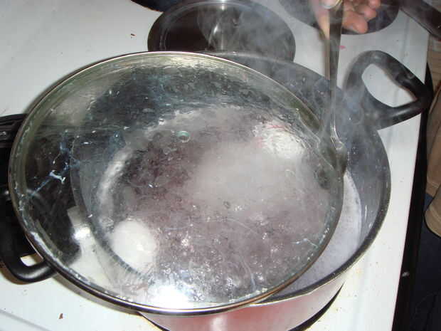 muy bien, así que en este caso "duros" es un poco de mentira. Se trata de "duro" huevos. Y por qué es fácil pelarlas es porque estamos cocinarlos en una olla a presión. Si crees que es una locura... están locos. ' Cuz esto es un puto m