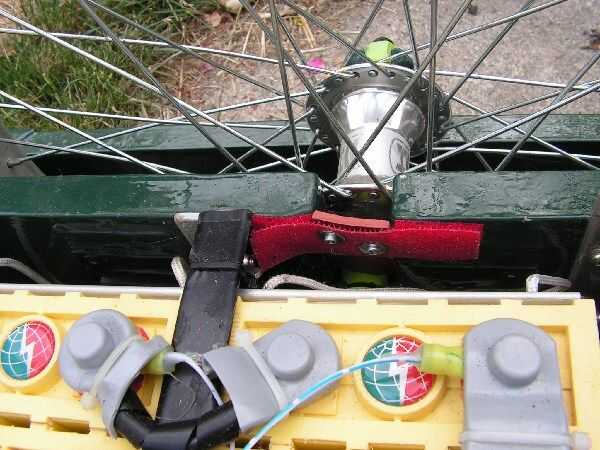 Que he montado dos veces, la primera vez fue cuando rompí los pernos (en extremo de la milla 60 ida y vuelta) y el segundo es solo una una milla de la prueba o dos con el nuevo sistema como se muestra en las fotos. Por lo tanto, el enganche todavía necesita probar. Sin embargo, apenas tuve que pedalear en viajar cerca de 30 millas, antes de recargar a mi destino, así que estoy contento con el desempeño del motor/batería hasta ahora. No tuve recortes debido a exceder límites de BMS o el controlador del motor. La recarga por cada viaje de 30 millas (1,5 hora de paseo) tomó solamente 1 a 1,5 horas, que estimo que pudo haber utilizado la mitad de la capacidad de la batería). La batería se vende como clasificado en 40ah para 48v ó 2000 Watt-hora en una velocidad de descarga de 1C (40a) creo. Es de mi máximo regulador 40a, por lo que debo ver el rendimiento exacto en amp-horas/watthours como la batería es nominal, es decir, espero ser capaz de ejecutar mi bicicleta acelerador a fondo durante una hora, recta (suponiendo que no recaliente el motor o el controlador)