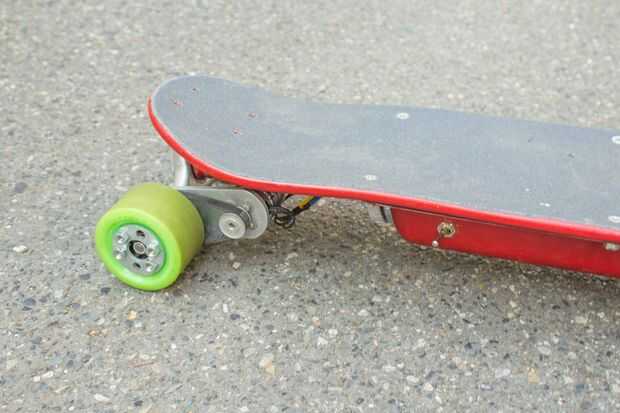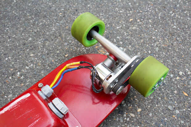 Aquí es un patín eléctrico bricolaje que es muy fácil y divertido montar! Este proyecto se basa en nuestra anterior Instructable, el longboard eléctrico. Sin embargo, el longboard eléctrico carecía de algunas características clave, como un cargador integrado en el sistemaun adecuado interruptor de encendido/apagadoy un controlador de Bluetooth smartphone. El longboard eléctrico también era demasiado grande (la cubierta era 45" de largo!) y así no podría ser utilizado como un dispositivo de transporte de cada día. Este patín tiene todas esas características, y también es camino más corto, lo que hace una opción aún mejor para ir al trabajo.