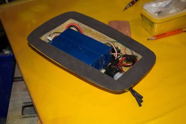 Poco después de terminar la versión 2.0 comenzó a trabajar en la versión 3.0. Yo había apodado este tablero el "tablero de plátano" por razones obvias. Dispone de un CNC corte cubierta, diseño compacto y un mayor alcance (mientras que sacrificar velocidad máxima). El tablero pesa 5 kg y 11 libras, lo que es el Consejo más claro que he hecho hasta ahora. Va a utilizar el tablero de plátano para mi viaje diario y como un banco de pruebas para mi Bluetooth smartphone controlador (disponible mediados de septiembre).