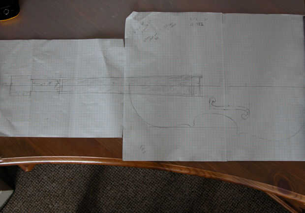 Como se mencionó anteriormente. Una forma sencilla de empezar es para trazar alrededor de otro violín. Esto, en combinación con las dimensiones medidas de violín y del libro de hoja de cálculo, puede producir una simple plantilla de partida. Cuadrado papel es muy útil en este momento!