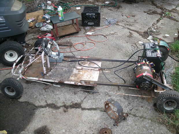 Todo comenzó cuando mi padre consiguió un motor y un controlador (no usado todavía) un pequeño carro eléctrico que algunas personas fueron a tirar. Además, alguien le dio un viejo marco va kart probablemente de los años 70. Tenía sorprendentemente poco moho excepto un asiento en el que alguien mal soldada. Sin embargo, todavía estaba en condición "tirar".