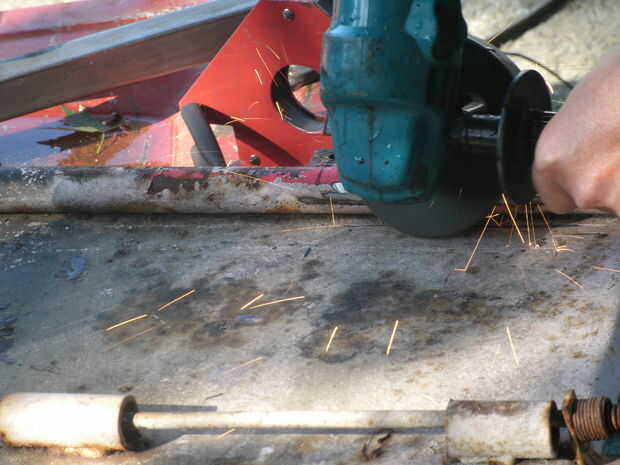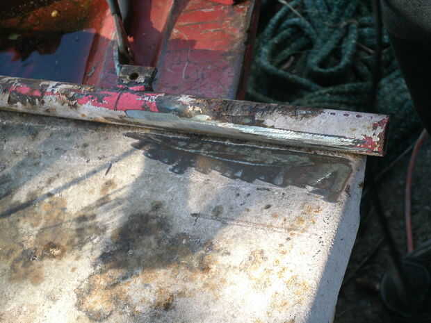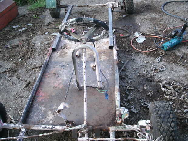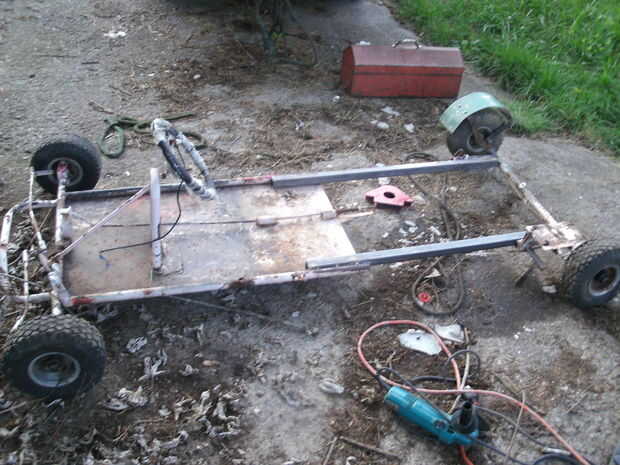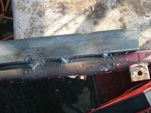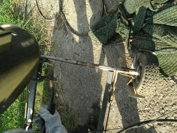 Luego, hemos alineado las ruedas traseras y hace tres grandes soldaduras hay a cada lado también. Sin embargo, en la parte posterior, volcó y soldado con autógena de la parte inferior también, metal de pulido y hacer buenas soldaduras.