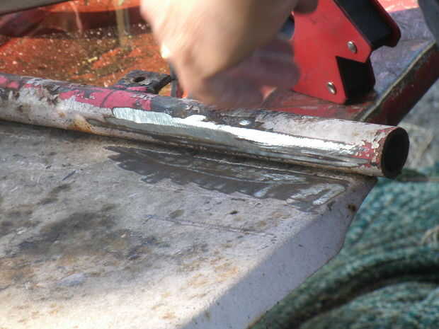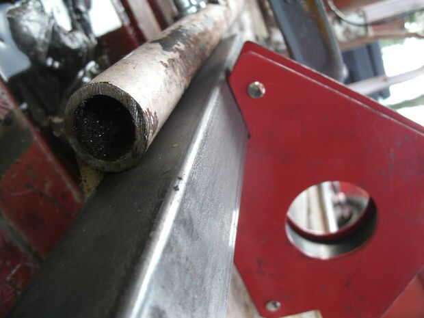 En primer lugar, se comprobó que los tubos eran aún paralelos, entonces hice tres grandes soldaduras en el extremo de cada tubo. El tubo derecho terminado siendo un poco torcido y la izquierda terminó bien. Comprobar todo es correcto antes de soldar. ojalá pudiera negrita que más. Usted no quiere tener a todas las soldaduras de la rutina y rehacer todo.