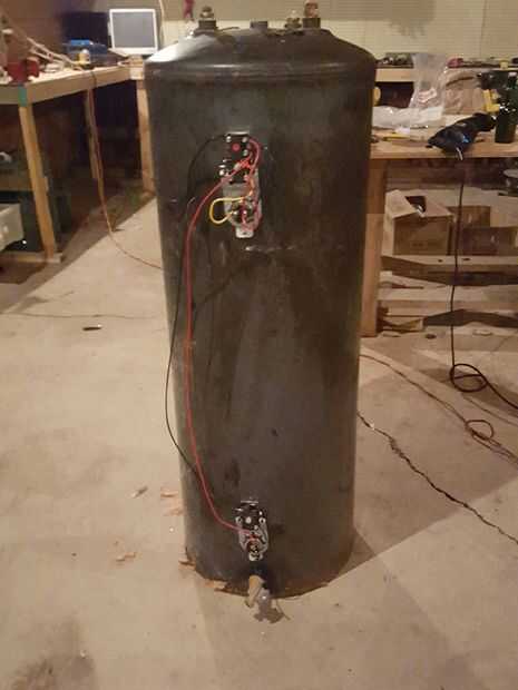 Luego necesitas el tanque de la tira hacia abajo. probablemente es una mejor manera de hacerlo pero sólo golpeó la tapa con un martillo luego utiliza unas tijeras para cortar el lado. Retire el aislamiento. Guardé el estaño y el aislamiento para futuros proyectos.