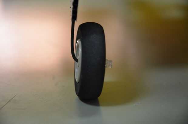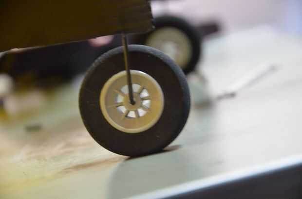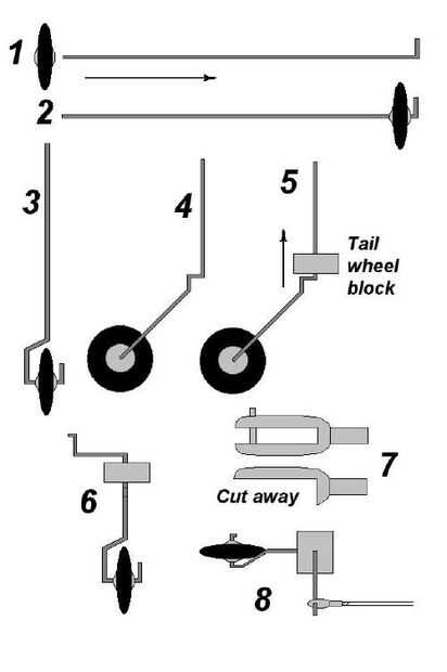 Puede utilizar la placa de aluminio doblado en forma de V invertida con las ruedas atornilladas en las puntas como un tren de aterrizaje principal. Esto sin embargo puede Agregar peso al frente por lo que he construido un tren de aterrizaje principal alternativo. Las instrucciones de la parte posterior del tren de aterrizaje fueron encontradas en spadtothebone.com. Crédito por su diseño vaya a los autores originales.