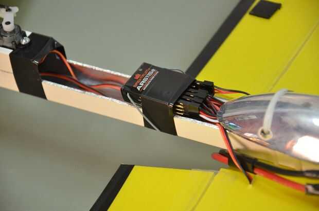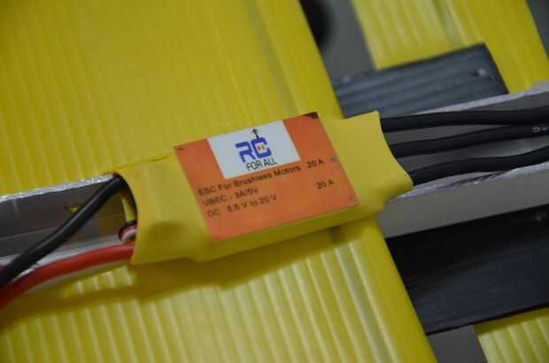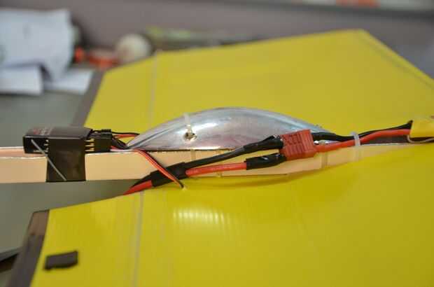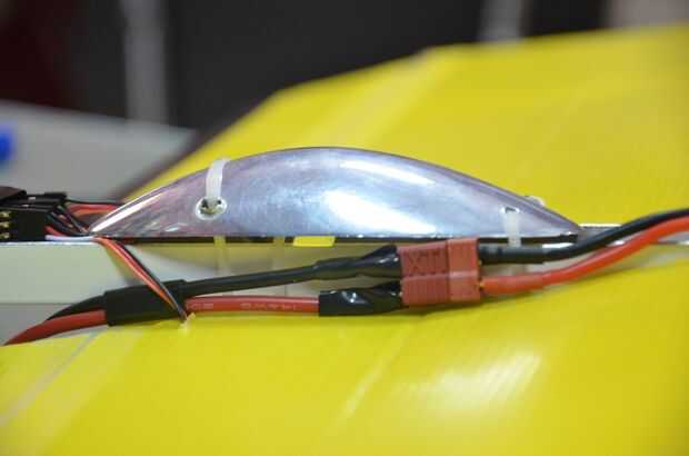 Una vez todo instalado tal que la aeronave está perfectamente equilibrada y es centro de gravedad es exactamente 3" detrás del borde principal del ala.