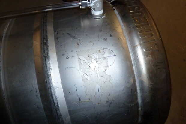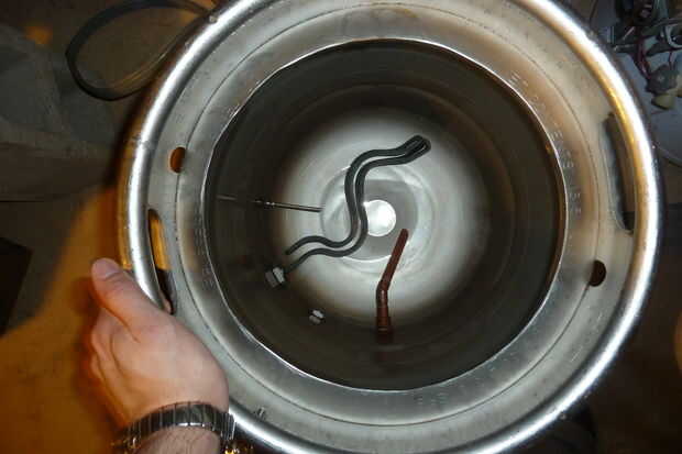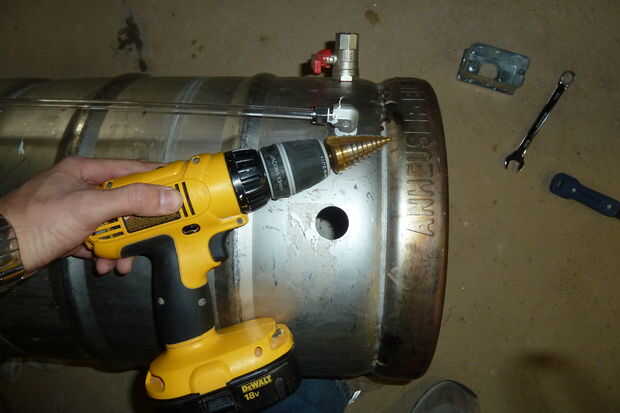 Taladre los agujeros para el calibrador de temperatura sonda o en el vista e instale los así. Si hacer una ventanilla y la punta de prueba, te recomiendo utilizando los elementos enumerados anteriormente para guardar otro agujero de perforación. Menos posible fuga puntos nunca son una mala cosa. Las necesidades de la sonda para calibrar y la manera más fácil de hacer antes de montarlo al barril (ver siguiente paso). También tienes que calibrar el medidor visual añadiendo un medio galón de agua a la vez y usando un marcador para marcar los volúmenes del calibrador.