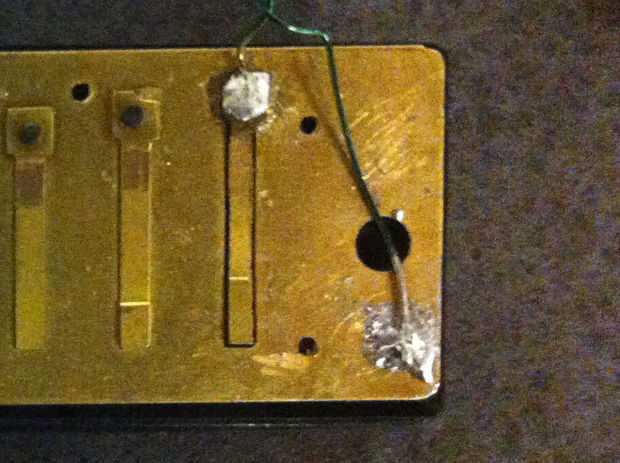 Mientras cantando este paso, asegúrese de usar una capa suficientemente gruesa de cola que la caña no toque directamente la placa. Mientras se está secando el pegamento, utilice un multímetro para comprobar que no se toquen. Ayuda si usted muele los dos servicios antes de pegarles.
